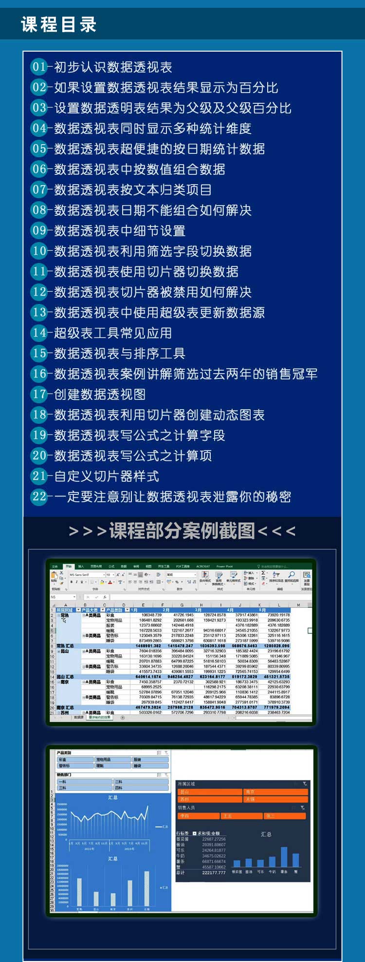 系统学习数据透视表的操作以及动态图表制作方法。