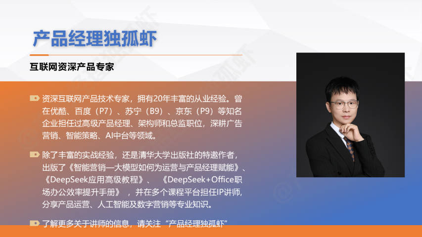 适合0-5年工作经验的数据分析师、商业分析师、数据运营、BI工程师、数据可视化工程师,以及所有需要提升数据分析效率的从业者。由互联网大厂P9级产品设计专家"产品经理独孤虾"亲授,20年实战经验倾囊相授。