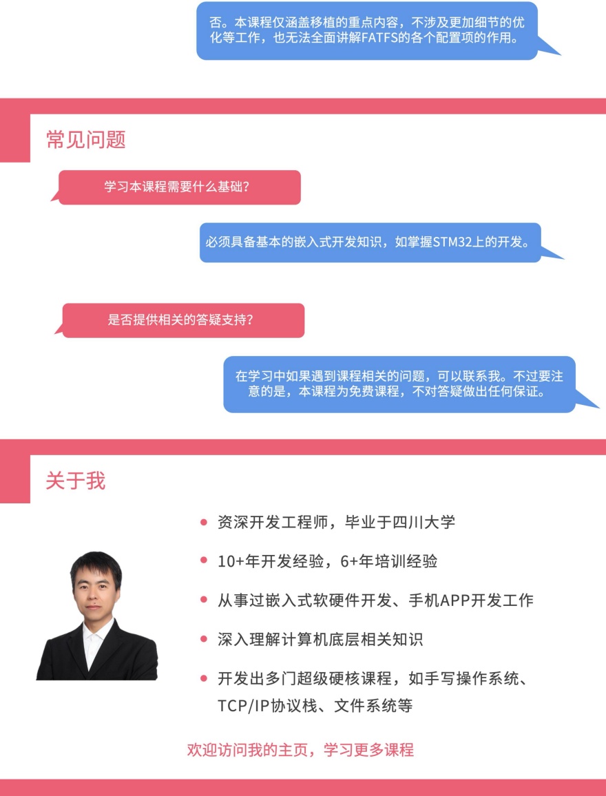 本课程是我的《FATFS详解》系列课程的后续课程,介绍FATFS文件系统如何移植到PC、SD卡和SPI Flash。