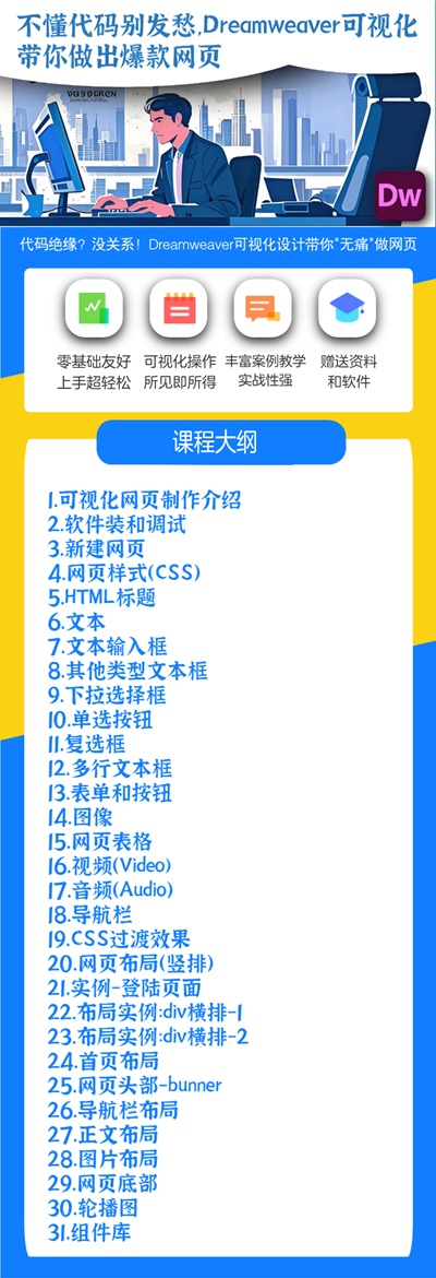 课程首页 前端开发H5/CSS Dreamweaver可视化网页制作-无需编写代码