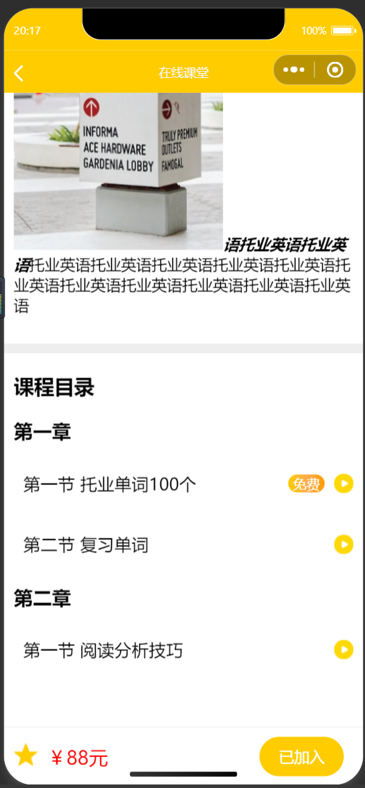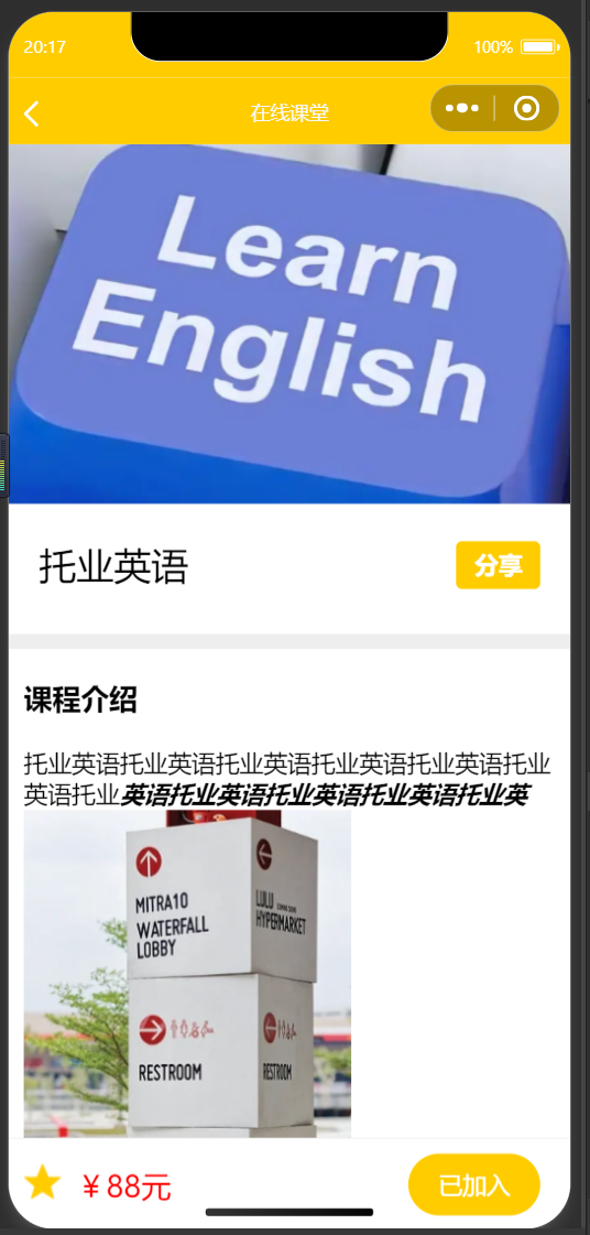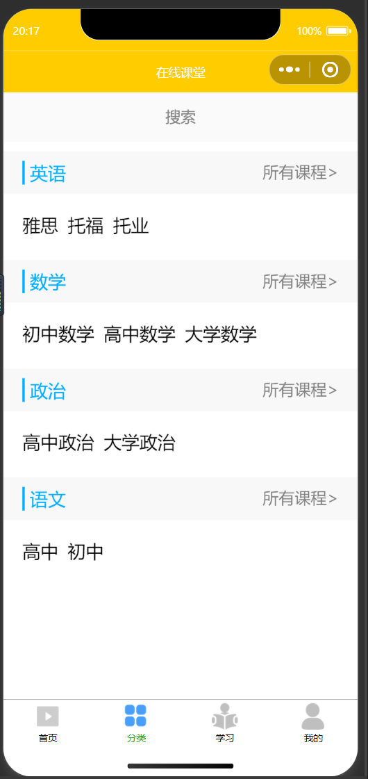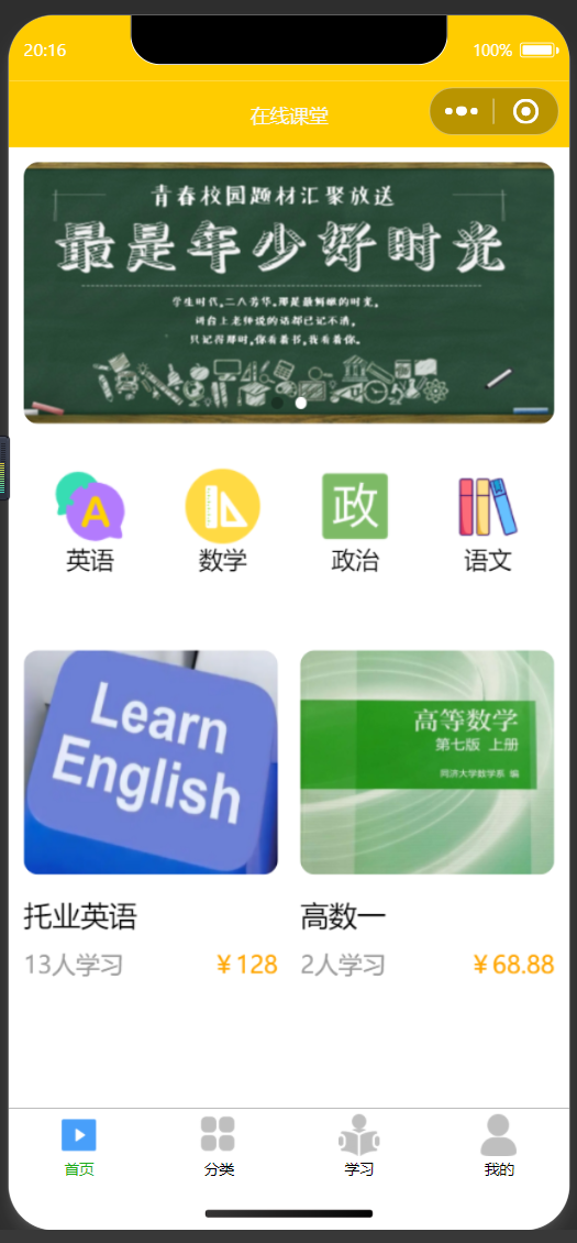 课程首页 移动开发微信开发 在线课堂小程序实战