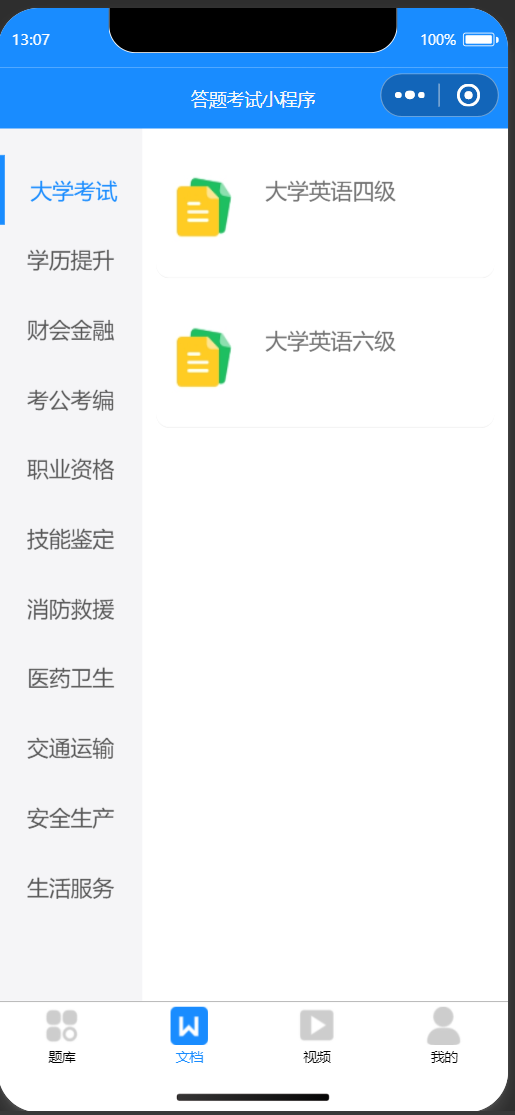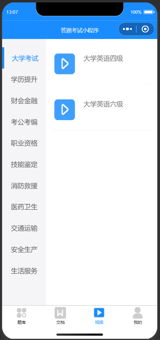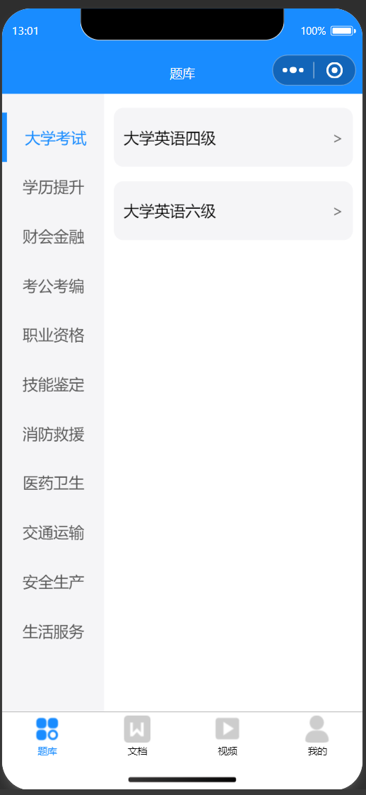 在线答题考试小程序【手把手教程】各种题库、题库练习、背题模式、考试模式、错题本、文档资料、视频课堂