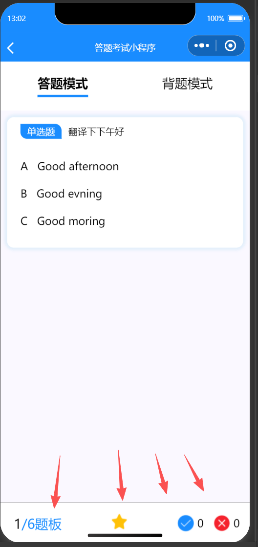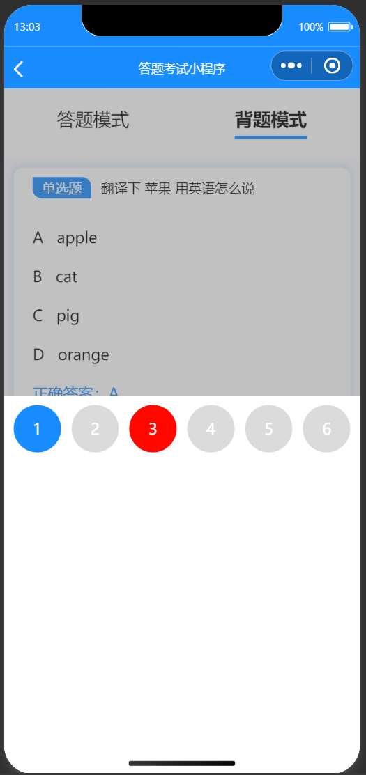 在线答题考试小程序、各种题库、题库练习、背题模式、考试模式、错题本