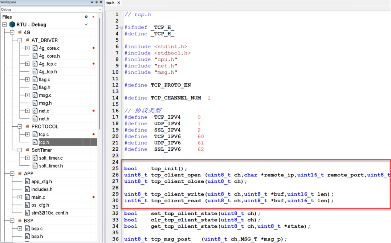 比如以后再使用tcp协议,连接只需要调用tcp_client_open() 函数,