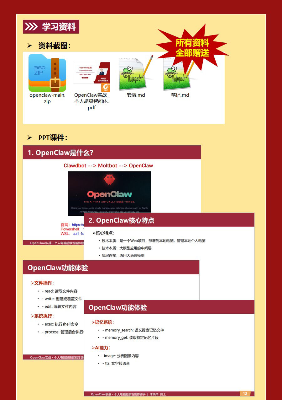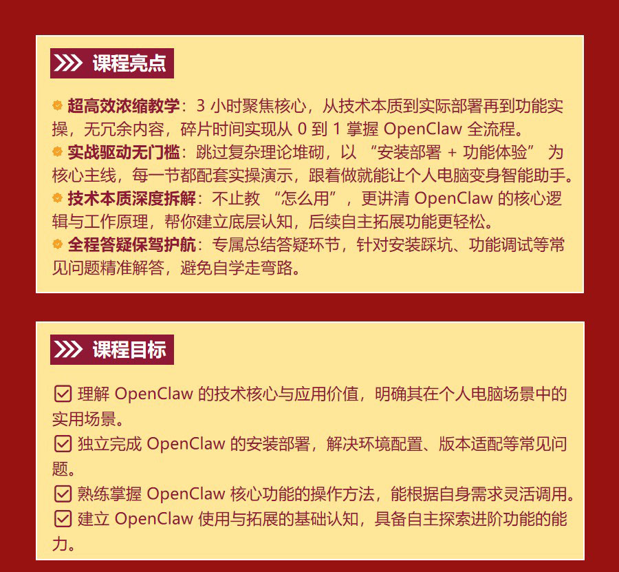 建立 OpenClaw 使用与拓展的基础认知,具备自主探索进阶功能的能力。