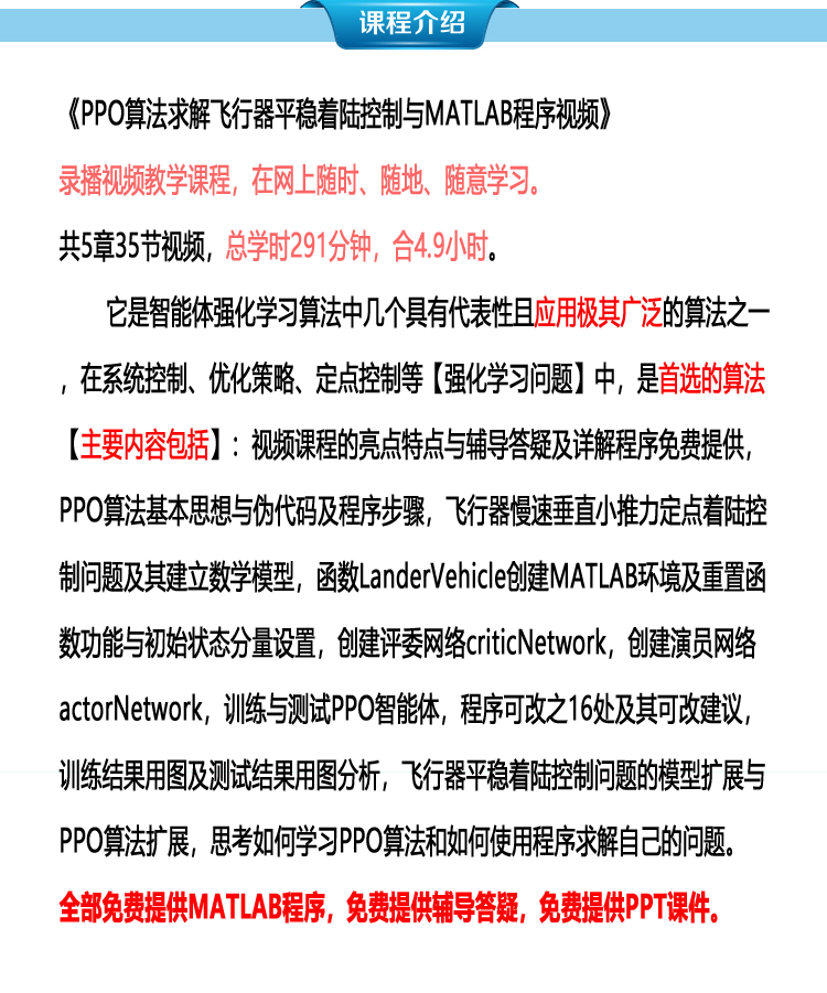 课程首页 人工智能强化学习 PPO算法求解飞行器平稳着陆控制与MATLAB程序详解视频有答疑给程序